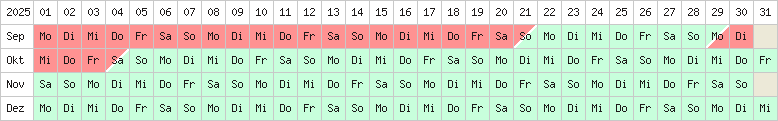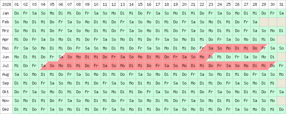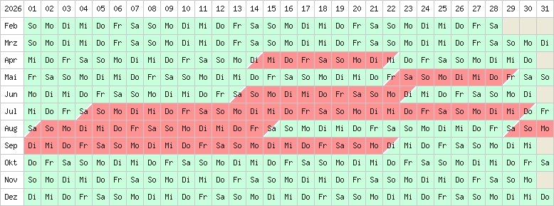 rot/grün = An-/Abeisetag