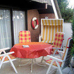 Relaxen Sie, geschützt vor neugierigen Blicken, z.B. im Strandkorb auf der Terrasse. Gartenmöbel und Auflagen sind ausreichend vorhanden sowie auch ein Elektrogrill, ein Damen- und ein Herrenfahrrad, Kinderfahrräder in verschiedenen Größen sowie ein Bollerwagen. Ein PKW-Stellplatz befindet sich auf dem Grundstück.